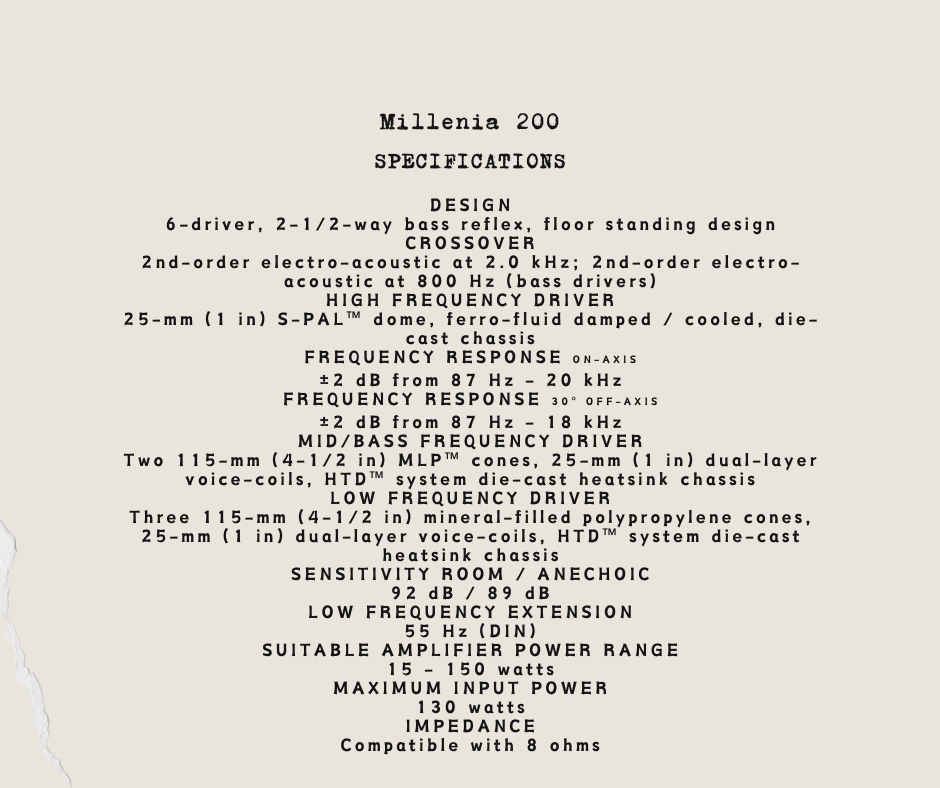 MID/BASS FREQUENCY DRIVER Two 115-mm (4-1/2 in) MLP™ cones, 25-mm (1 in) dual-layer voice-coils, HTD™ system die-cast heatsink chassis